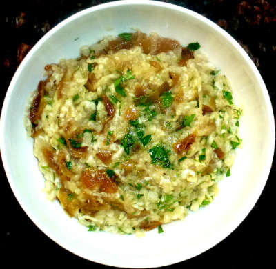 Оригинальная закуска. Готовится с минимумом ингредиентов за 15 минут, если под рукой есть заготовка - жареный лук.