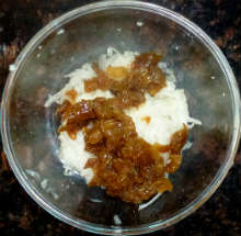 Оригинальная закуска. Готовится с минимумом ингредиентов за 15 минут, если под рукой есть заготовка - жареный лук.