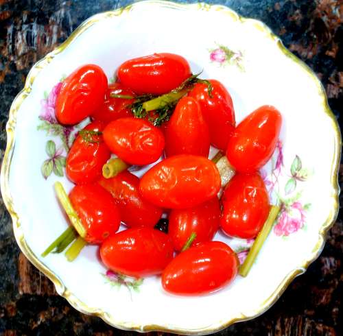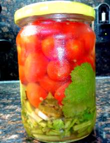 Солёные помидорки черри с горчицей и зеленью