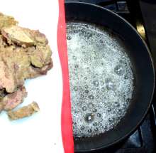 Жарить печёнку не нужно - она уже жареная.