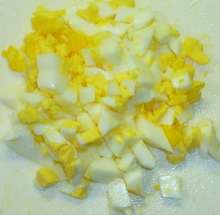 Яйца мелко порубить.