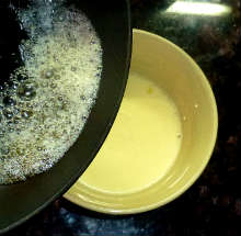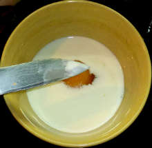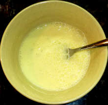 Взбить ингредиенты омлетной смеси вилкой или венчиком.