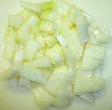Лук нарезать мелким кубиком.
