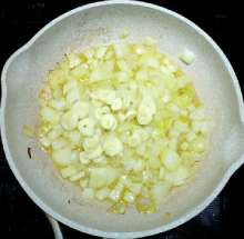 Когда лук станет мягким - добавить чеснок в сковороду.