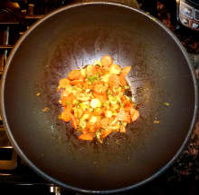 Раскалить сковороду с подсолнечным маслом, выложить зажарку.