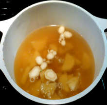 В оригинальном рецепте все овощи и рыба выкладываются в кастрюлю одновременно, но проблема в том, что в кислой среде картофель варится в два раза дольше. Поэтому мы вначале доводим его до полуготовности, а уже затем добавляем помидоры.