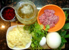 В оригинале рецепта в бульон добавляется сырой лук, но уж очень я не люблю вареный лук - вобщем - на ваше усмотрение.Готовые фрикадельки всплывут на поверхность.