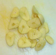Лук нарезать тонкими полукольцами. Чеснок нарезать шайбами.