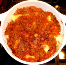 Имейте в виду, что картофель в кислой среде варится медленнее, поэтому дайте ему дополнительные 5-10 минут сверх обычного срока. Настоящая армянская хашлама, которая не суп и не второе, готовится несколько иначе: все ингредиенты без обжаривания укладываются слоями в холодный казан, заливаются бульоном, или пивом, или их комбинацией и отвариваются на медленном огне.Мясо иногда предварительно отваривается, иногда - нет.