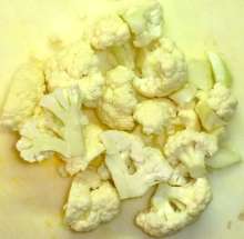 | Цветная капуста, жареные грибы с луком, белая фасоль, зеленый горошек. | В кипящий куриный бульон последовательно добавляются картофель, жареные грибы с луком, соцветия цветной капусты, зажарка из моркови и стебля сельдерея. По готовности картофеля добавляются консервированная фасоль и зеленый горошек. Суп доводится до кипения, снимается с огня и заправляется горчицей, хреном, чесноком. |
