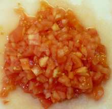 Помидорную мякоть мелко нарезать.