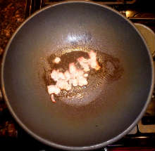 Когда бекон подрумянится и вытопится жир - выложить в сковороду пасту.