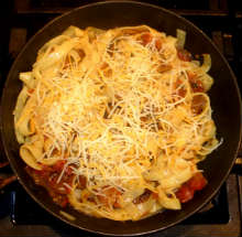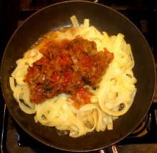 | Томатная заправка | Отваренные макароны разогреваются на сковороде со сливочным маслом, добавляется томатная заправка тертый сыр. Блюдо разогревается до расплавления сыра. При подаче заправляется свежей зеленью. |