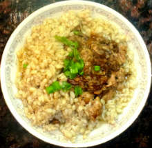 Простое народное блюдо из советского прошлого, современным детям наверняка незнакомое. Но это не делает его менее вкусным, даже если отбросить ностальгические воспоминания о турпоходах и поездках на картошку. Готовится просто моментально на основе двух заготовок: предварительно отваренной перловки и соуса из тушенки и жареных грибов..