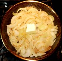 Поджарить лук до мягкости, добавить сливочное масло.