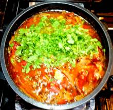 Если планируется съесть чахохбили сегодня - выключить огонь слазу после добавления кинзы.