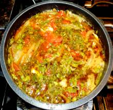 Чахохбили - традиционное блюдо грузинской кухни с целой гаммой вкусов и ароматов. Соус в чахохбили не может оставить равнодушным ни одного самого требовательного гурмана! Грузины вообще называют это блюдо "соус". Готовится довольно просто, хотя и требует большого количества ингредиентов. В принципе - просто курица, тушеная с помидорами и луком, но сколько нюансов, и каков результат! Особенность нашего блюда - мы готовим его из остатков жареной курицы, которая на второй день уже малоапетитная. За счет того, что курица уже готова, блюдо можно приготовить за 30 минут - из которых 20 минут уходит на приготовление соуса.
