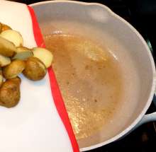 Перевернуть картошку разрезом вниз (так она лучше пожарится).