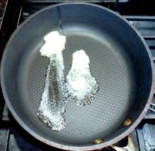 Разогреть сковороду со сливочным маслом.
