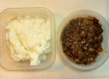 Как уже говорилось, можно использовать остатки вчерашнего обеда. Если готовите пюре специально - делайте его густым, т.е. не лейте много молока (или вообще не лейте)