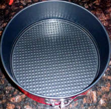 Подготовить форму для запекания (у меня - разборная металлическая форма). Застелить дно формы пергаментной бумагой, слегка смазать её оливковым маслом, присыпать сухарями.