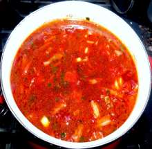 Поскольку в борще много ингредиентов, не всегда удается сходу добиться требуемой консистенции. Если борщ получился слишком густым (особенно на следующий день) его можно разбавить кипятком.