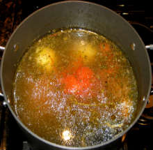 Ну, это конечно не похлёбка - "похлёбки" - это лёгкие овощные супы. Но это несоответствие никак не уменьшает достоинств этого блюда, 100 лет продержавшегося в меню московского ресторана "Славянский базар" (см. историю). Очень неожиданное и интересное сочетание рыбы и грибов. Варится этот суп по технологии ухи, но существенно отличается ингредиентами. Попробуйте - не пожалеете.