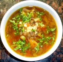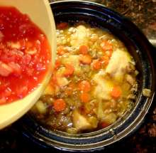 В оригинальном рецепте похлёбка готовится в порционных горшочках в духовке. Я всё чаще заменяю духовку медленноваркой - меньше возни, а результат не хуже, но вы поступайте по своему усмотрению.