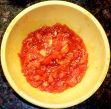 Мелко нарезать помидоры.