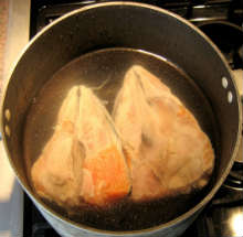 Проварить филе на малом огне 15-20 минут, вынуть из кастрюли.