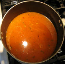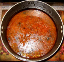 В большинстве рецептов советуется рассол процедить, слить в кастрюльку, довести до кипения, снять пену и кипятить около пяти минут. Я использую рассол от консервированных огурцов и смысла в этих манипуляциях не вижу. С рассолом будьте очень осторожны - пропорция зависит от качества рассола (он может быть очень соленым или очень кислым), поэтому нужно добавлять его по столовой ложке и снимать пробу. Вкус должен быть солоноватым и с кислинкой. Интенсивность зависит от ваших предпочтений.