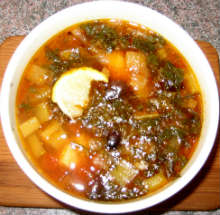 Маслины, каперсы, маринованные огурцы, рассол, лимон, томат. В рыбном бульоне отвариваются порционные куски рыбы, вынимаются, затем отваривается картофель, добавляется зажарка из помидор, жареного лука с маринованными огурцами и томатом, а перед окончанием варки - маслины и каперсы. Готовая солянка заправляется рассолом и лимонным соком. Подается с кусочками рыбы, долькой лимона, зеленью и сметаной.