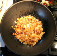 Нарезать кубиками лук, поджарить на масле до золотистой корочки.