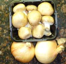 Подготовить грибы и лук.