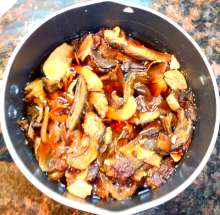 В оригинальном рецепте грибы не обжариваются, но у меня не белые грибы, а ассорти, и их обжарка усилит вкус грибной составляющей.
