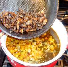 Добавить грибы в кастрюлю.