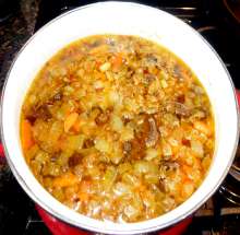 Варить суп на малом огне до готовности картофеля. Выправить на соль и перец.