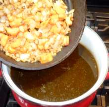 Отвар процедить, добавить к бульону.