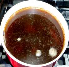 Варёные сухие грибы вынуть шумовкой из отвара, отвар не выливать, процедить.