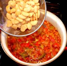 Если у вас сухая фасоль – её нужно замочить на ночь, затем отварить до полуготовности 30-40 минут и выложить в суп перед овощной зажаркой.