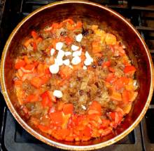 В оригинальном рецепте лук жарится вместе с перцем, однако у них разное время готовности, поэтому я предпочитаю жарить их отдельно.