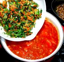 Добавить томатную заправку. Готовить 2-3 минуты.