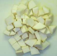 Репа. Капусты нет. Готовится говяжий бульон с добавлением сухих грибов, процеживается. В кипящий бульон последовательно добавляется картофель, репа, овощная зажарка (лук, морковь, томаты, томатная паста, мука), тушеная свекла. Борщ довариается до готовности картофеля, заправляется чесноком.