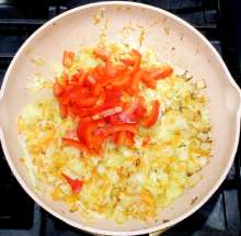 | Болгарский перец. | Готовится говяжий бульон, процеживается, в него добавляется картофель, затем - овощная зажарка (лук + морковь + корень петрушки + сладкий перец + свёкла + томат) и свежая капуста. Борщ варится до готовности картофеля, заправляется рубленным чесноком. При подаче заправляется свежей зеленью. |