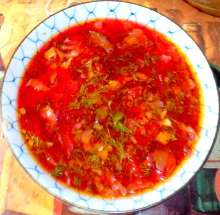 Оригинальный региональный рецепт деревенской кухни. Он имеет две особенности: использует маринованную свёклу и томится в духовке длительное время. Благодаря этим особенностям борщ обладает уникальным вкусом, не похожим на другие борщи.