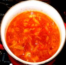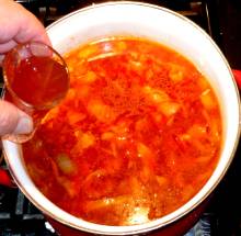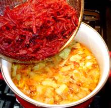 Капуста к этому времени должна свариться, но если она на ваш вкус жестковата – продолжить варку до требуемой текстуры капусты после добавления свеклы.