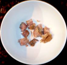 Вынуть мясо, остудить, нарезать небольшими кубиками.