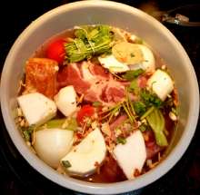 Вынуть ингредиенты шумовкой, бульон процедить.