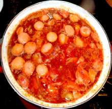 Выложить сосиски в кастрюлю.