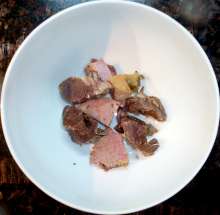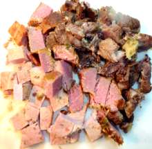 Остывшее мясо нарезать небольшими кубиками.